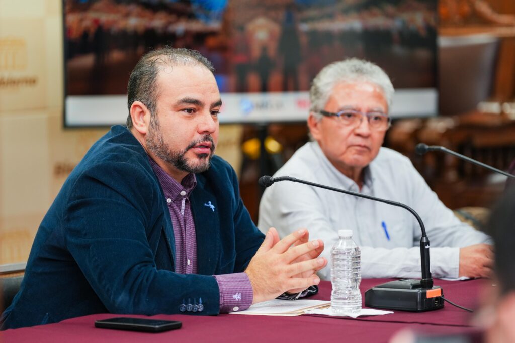 Este viernes fue presentada la Feria de Navidad y la programación de artistas ante medios de comunicación, en rueda de prensa ofrecida por el presidente del Patronato de la Feria de Navidad “Puerta de Oro del Bajío”, Jorge Yúdico, y la directora de Ecofórum, Sandra Lira, acompañados por el jefe de Gabinete, Gustavo Paloalto.