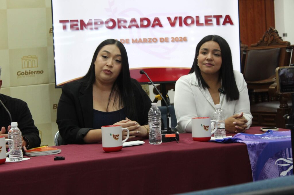 Las Regidoras, Selene Naylea Valencia Hernández y Ana Laura Benítez Rivera, en conjunto con directores de área, dieron a conocer la agenda de actividades que se realizarán del 4 al 31 de marzo próximos, dentro de la “Temporada Violeta”.